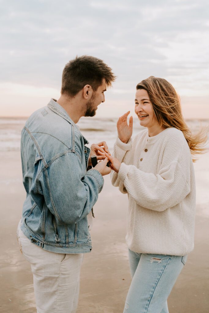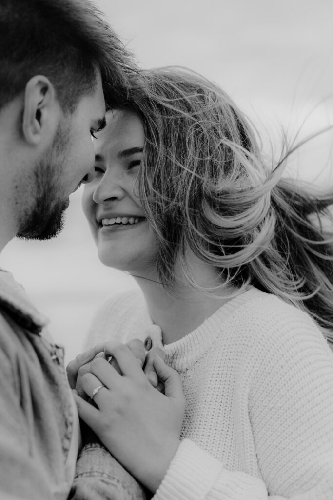 Zu Beginn des Shootings war alles entspannt, zumindest schien es so. Ich hatte eine gute Freundin als “Hilfe” dabei, die den Antrag später auch mit dem Handy filmen durfte. Denn der eigentliche Höhepunkt sollte erst am Ende unserer Fellfreundschaft kommen. Wenig Text, einfach nur die beiden, das Meer und die Wellen. So sollte es sein. Wir hatten im Vorfeld ein Zeichen vereinbart, auf das Bence gespannt wartete.
